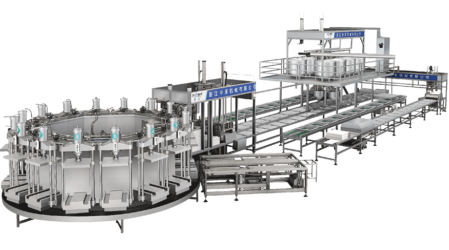 公司现有产品线涵盖了黄豆提升、浸泡清洗、磨浆分离、煮浆系统,内酯豆腐、冲浆板豆腐、老豆腐、日本豆腐、机制百叶(千张)、豆腐干、豆浆豆奶等自动化生产线共二十多个系列两百余种豆制品设备,在国内有三百多家豆制品厂成功运用的案例,是新建、扩建大中型豆制品厂家设备供应商。