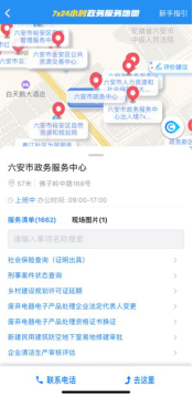 进入皖事通APP·六安站,点击“7x24小时政务服务地图”后进入地图模式,输入要办理的事项名称或要前往的场所地址。