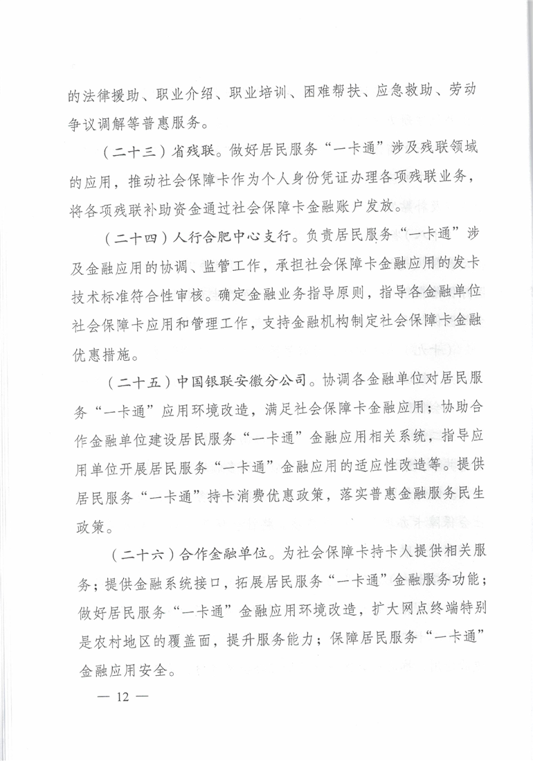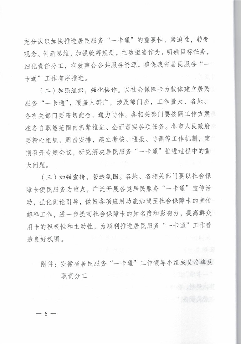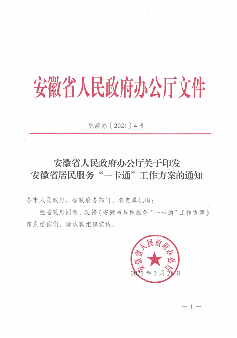 安徽省人民政府办公厅关于印发安徽省居民服务“一卡通”工作方案的通知