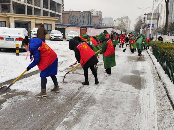 一大早,在市人社局包保路段(解放路至磨子潭路)清雪现场,广大党员干部、志愿者们齐上阵,大家配合默契、热情高涨、干劲十足,一起挥动着手中的铁锹,以最快的速度清理道路积雪和结冰。在铲雪过程中志愿者们主动为打滑车辆推车,白雪皑皑中的“一抹红”构成了这个冬日雪景中最靓丽的风景线。经过50余名党员志愿者几个小时的努力,包保路段积雪暗冰基本清理干净。大家用汗水和实干铲出了一条条“安全路”,最大程度的降低了积雪给交通带来的安全隐患。