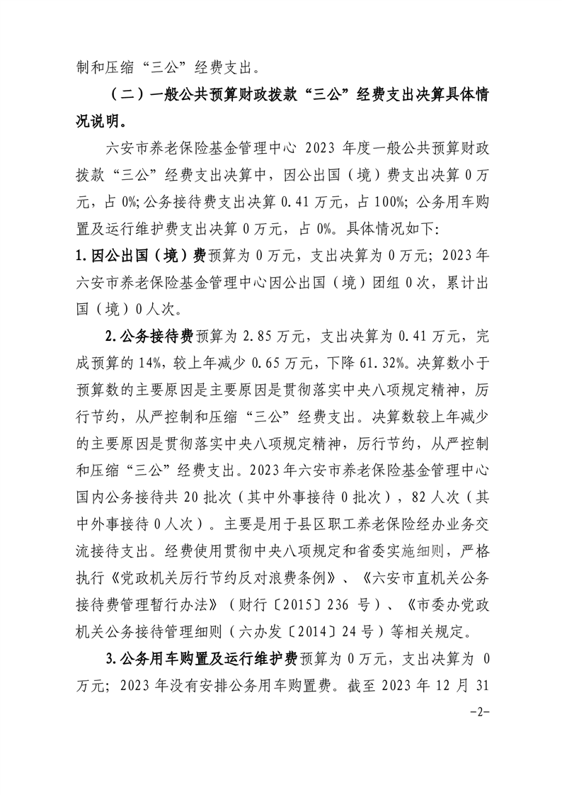 六安市养老保险基金管理中心2023年度“三公”经费决算公开