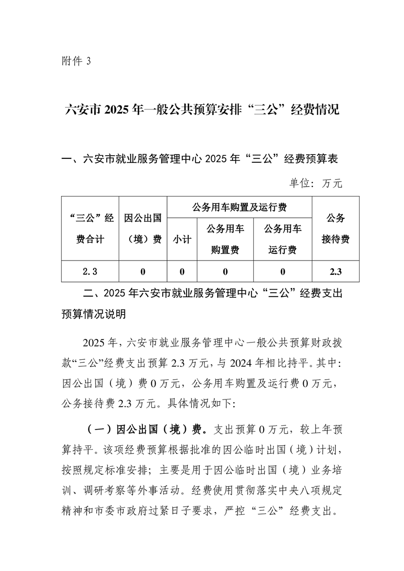 六安市就业服务管理中心2025年单位一般公共预算安排“三公”经费情况公开