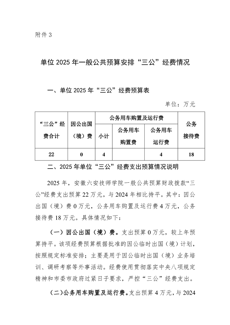 安徽六安技师学院(六安高级技工学校)2025年单位一般公共预算安排“三公”经费情况公开