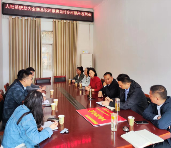 在村部召开的座谈会上,村支书肖俊对人社系统近年来的真情帮扶表示感谢。2023年以来,市、县两级人社系统对黄龙村村两委成员、乡村振兴工作队员、脱贫人口先后开展了劳动保障监察业务知识、脱贫稳就业技能等系列培训,同时在产业发展、农产品帮销上给予相应支持。
